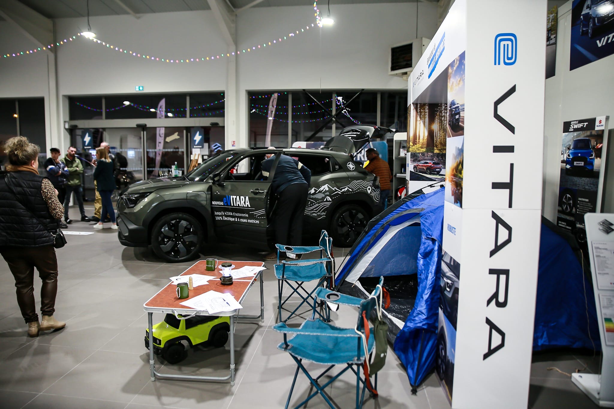 Lors de ces deux soirées, les invités ont pu découvrir le nouveau eVitara en avant‑première, monter à bord, échanger avec les équipes, et tester le véhicule sur route.